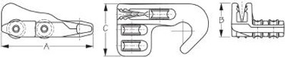 CL244 clamps onto a pole or tube.The high strength alloy cleat fits into the nylon clamp, which is held by 2 screws. A rubber friction packer provides a strong grip on bare metal poles.Four sizes of clamp are available, to fit tube diameters from 30 - 42mm (1 1/8" - 1 5/8"vò). Separate parts can be supplied for specific applications.Different thickness of rubber can be supplied to cope with tubes down to 25mm diameter.
